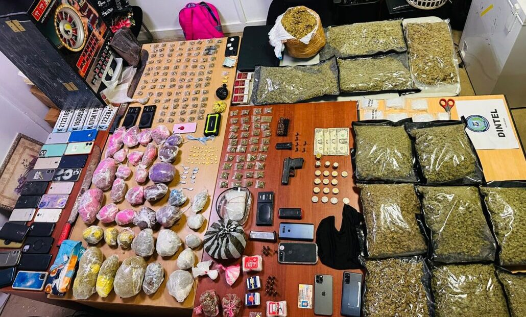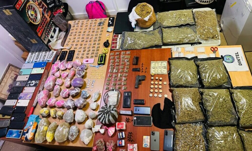 Durante las intervenciones, se confiscaron cantidades significativas de sustancias ilegales: 9,392.9 gramos de presunta marihuana, 70.6 gramos de cocaína, 6.3 gramos de crack, y 3.5 gramos de molly. Además, se incautaron seis balanzas, varias cajetillas de cigarrillos, una pistola calibre 9 mm con su cargador y 31 cápsulas sin documentación, 29 celulares, una computadora, cuatro tablets, una máquina tragamonedas, armas blancas, así como un total de 1,550 pesos en efectivo y cuatro dólares.