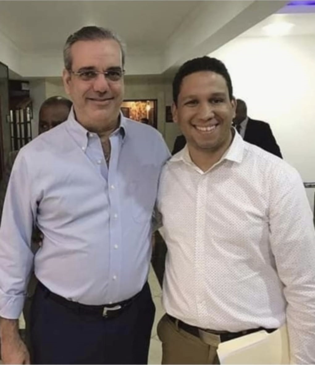 El popular dirigente del PRM en la ciudad de Santiago Marcos Rodríguez junto al presidente Luis Abinader