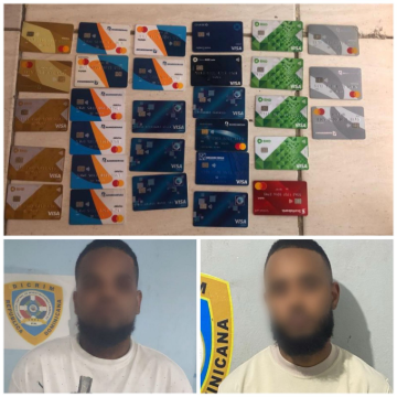 El Correo.-SANTIAGO.- Agentes policiales adscritos a la Sección de Investigación de Delitos contra la Propiedad, con asiento en el destacamento del sector Junta de los Dos Caminos, informaron el arresto en flagrante delito de dos individuos implicados en actividades ilícitas relacionadas con el uso indebido de tarjetas bancarias.