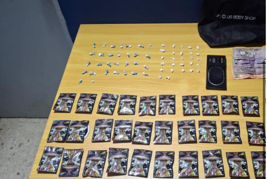 En el sector Los Guaricanos, un individuo identificado como “Maco” logró escapar al notar la presencia policial, dejando abandonada una mochila con múltiples porciones de drogas y dinero en efectivo.