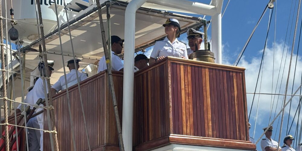 Leonor de Borbón, de 18 años, participa en esta travesía como parte de su formación militar en la Armada española. Esta experiencia, que ya vivió su padre el rey Felipe tiene como objetivos reforzar su preparación como futura Jefa de las Fuerzas Armadas, brindándole conocimientos prácticos en navegación y vida en alta mar.