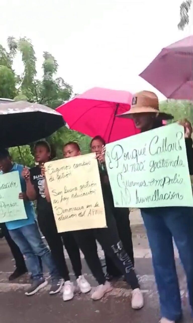Los manifestantes aseguran que, desde hace años, se vienen registrando situaciones que afectan tanto a los estudiantes como al personal docente, sin que las autoridades educativas hayan dado respuesta. Durante la manifestación, los padres entregaron dos cartas formales de denuncia y una con firmas de respaldo, dirigidas a la Dirección Regional de Educación 10, específicamente a la licenciada Dominga Mosquea Sosa, con copias al área de Recursos Humanos y Supervisión Educativa.