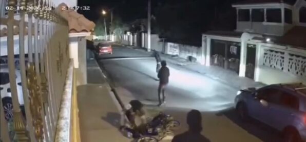 En las imágenes, se observa cómo el vehículo se acerca al lugar donde los jóvenes estaban entregando la pizza. De inmediato, varios hombres descienden rápidamente de la jeepeta y rodean a los repartidores, exigiéndoles sus pertenencias mientras los amenazan con armas. El robo se lleva a cabo de manera rápida, y los delincuentes se retiran del lugar tras cometer el delito.