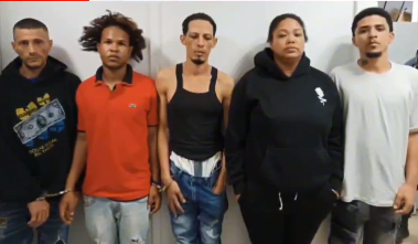 Los detenidos son: Jennifer Alfonsina Abreu, alias “Belkis”, Clide Antonio Tavares Rodríguez, Rafael Arismendi Tavares Peñaló, Francis Recio Delgado y Oliver Estarlin Santo Rosario, arrestados mediante orden de allanamiento No. 11689-2023, en una residencia ubicada en el barrio Obrero, de la sección Canabacoa.