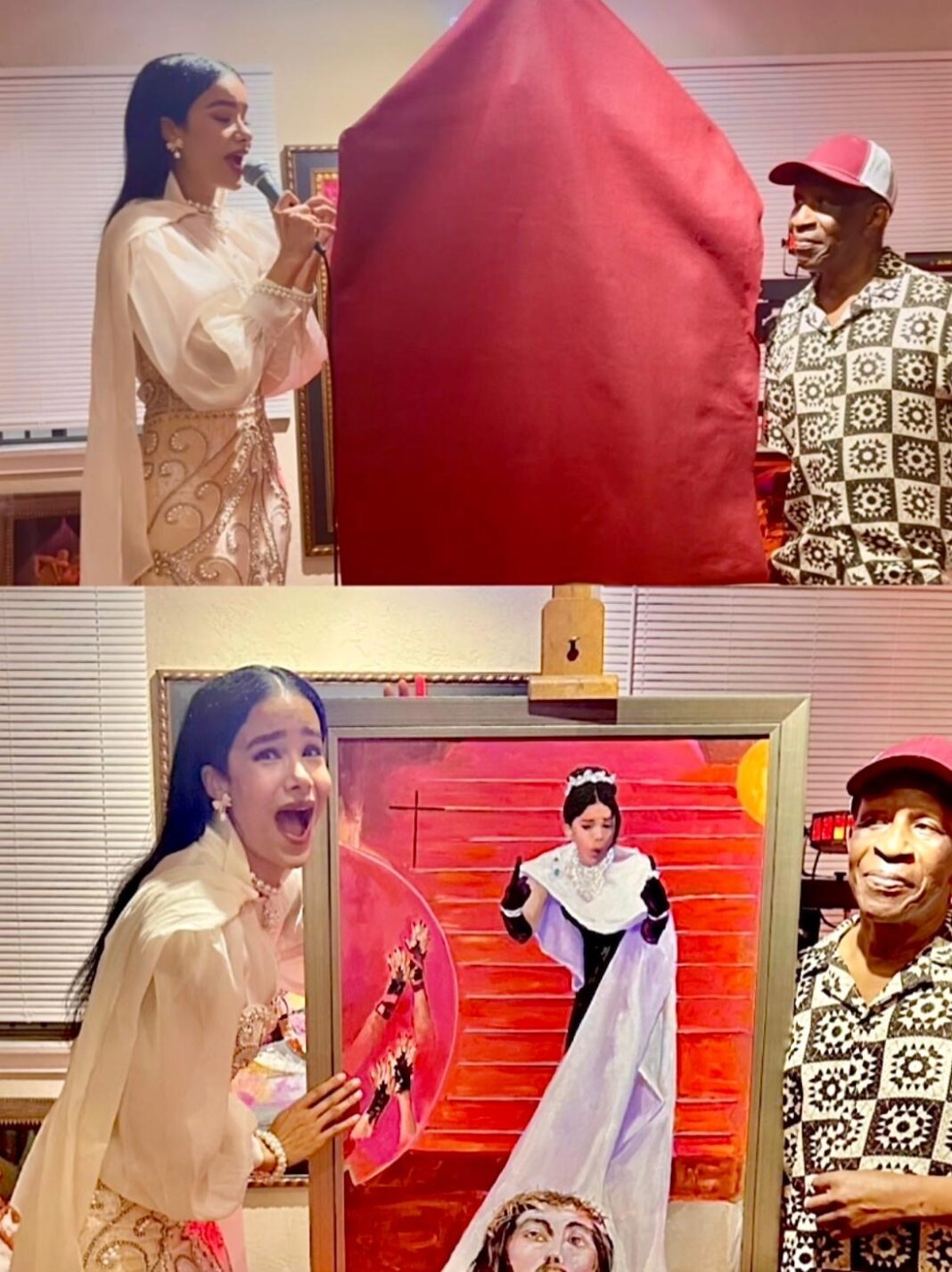 La gala tuvo lugar en la galería del reconocido artista afroamericano Emmy Lu, donde se presentó oficialmente al público su más reciente creación: la imponente obra titulada “Jesús revolucionario”, inspirada en la icónica imagen de Massiel Taveras en Cannes, con el vestido que exhibía el rostro de Cristo y que le dio la vuelta al mundo.